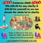 Make a difference this year enter for free, win £20.26 for charity & £20.26 for yourself or, give the lot to charity.